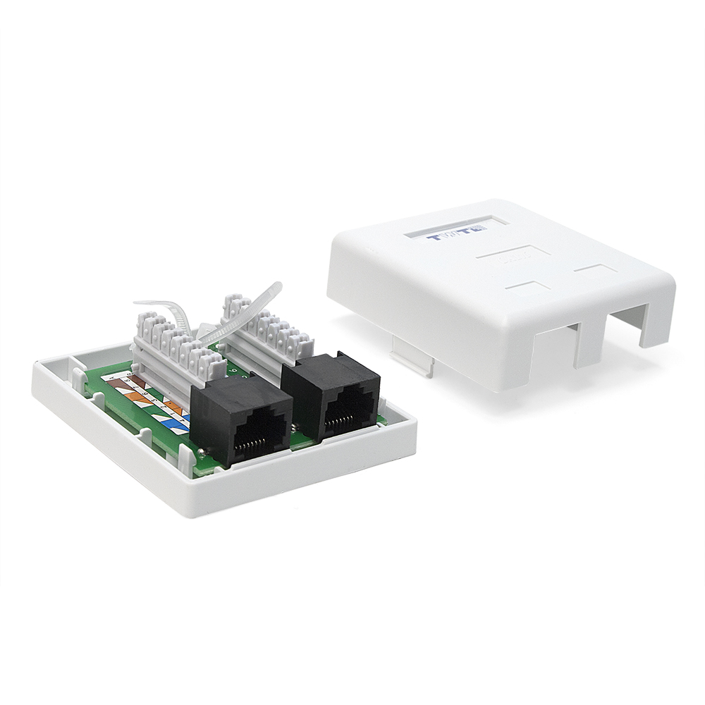 Настенная розетка, 2 порта RJ-45 категории 5е, UTP, белая
