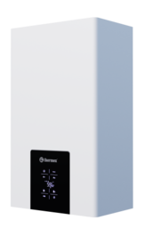 Котел оснащен сенсорным управлением и большим информативным дисплеем, что делает его использование интуитивно понятным. Его минималистичный дизайн и белая матовая окраска легко впишутся в любой интерьер, сочетающиеся с современными тенденциями.