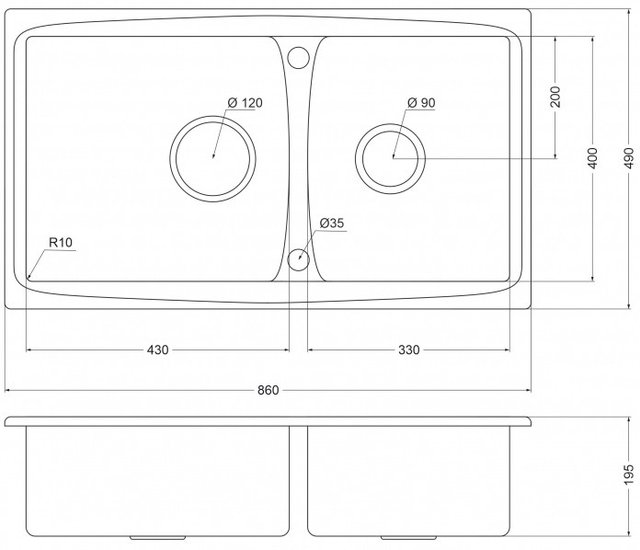 - Ширина мойки 86 см