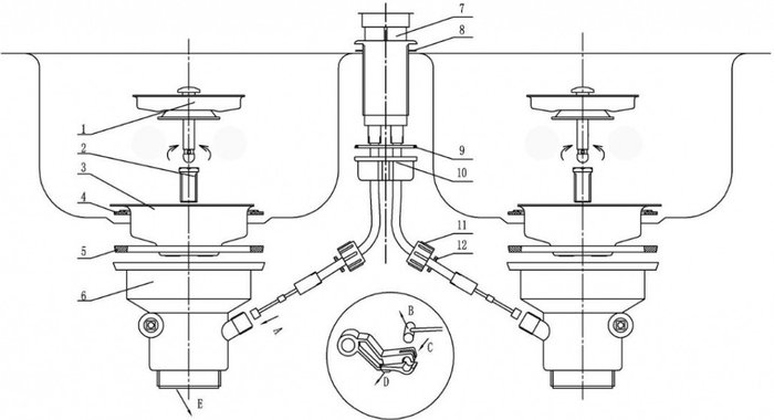 - Комплектация Сливная арматура с корзинчатым вентилем, выпуск, перелив, сифон и комплект крепежа.
