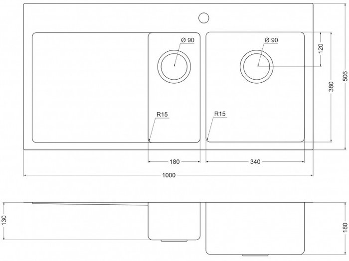 - Ширина мойки 100 см