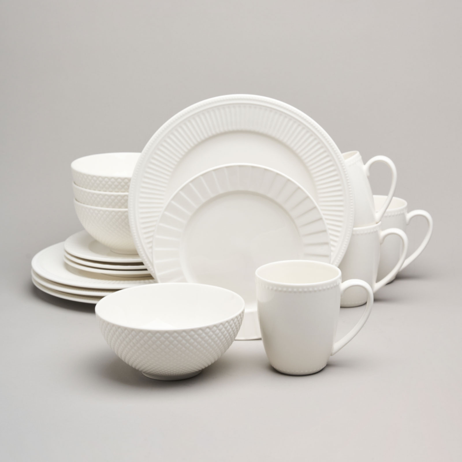Комплектность: тарелка обеденная 26,5*2 см - 4 шт., тарелка закусочная 20*2 см - 4 шт., тарелка суповая-салатник 720 мл 17,5*6 см - 4 шт., кружка 400 мл - 4 шт.