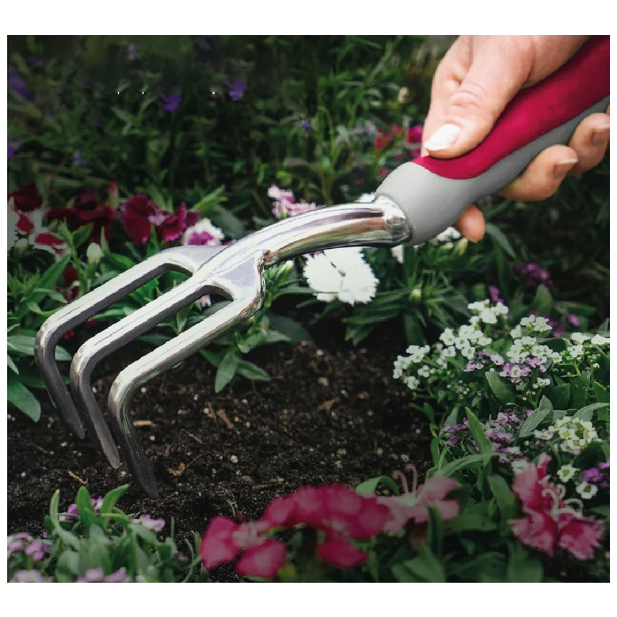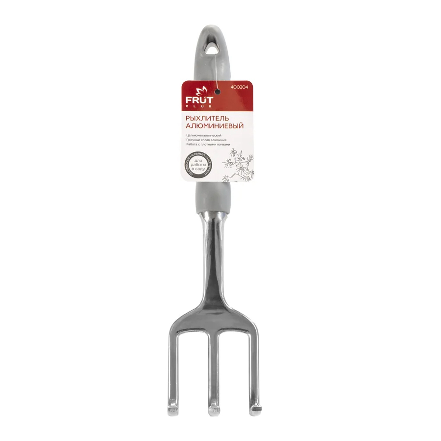Алюминиевый рыхлитель Frut Club 400204 предназначена для чистки, подготовки и выравнивания почвы перед посадкой и для прополочных работ между растениями и цветами. Изготовлен из алюминия. Эргономичная рукоятка (прорезиненная) обеспечивает дополнительный комфорт при работе.
