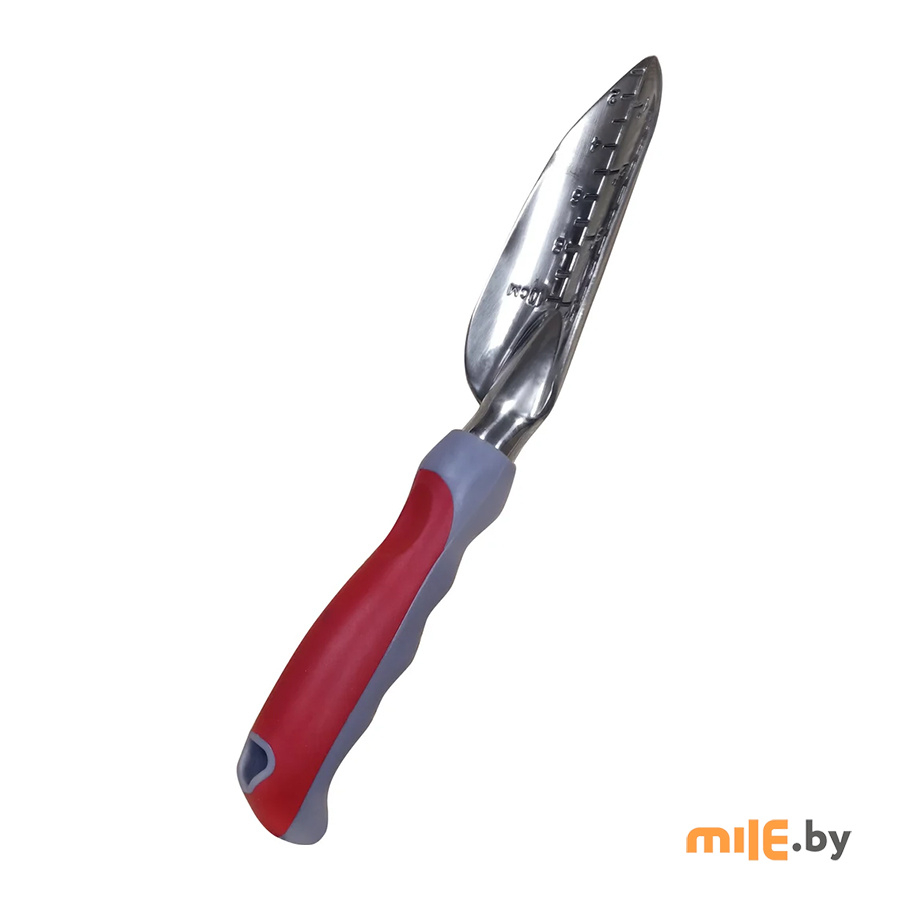 Подходит для пересадки растений, узкое лезвие помогает сохранить корни. Сделан из алюминия с защитным покрытием против ржавчины и налипания. Ручка удобная, не скользкая.