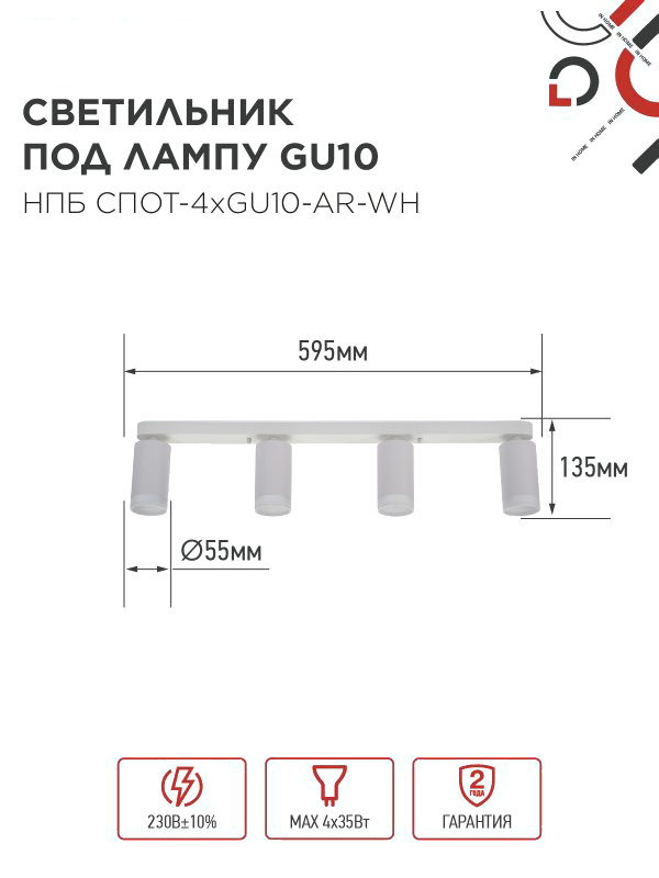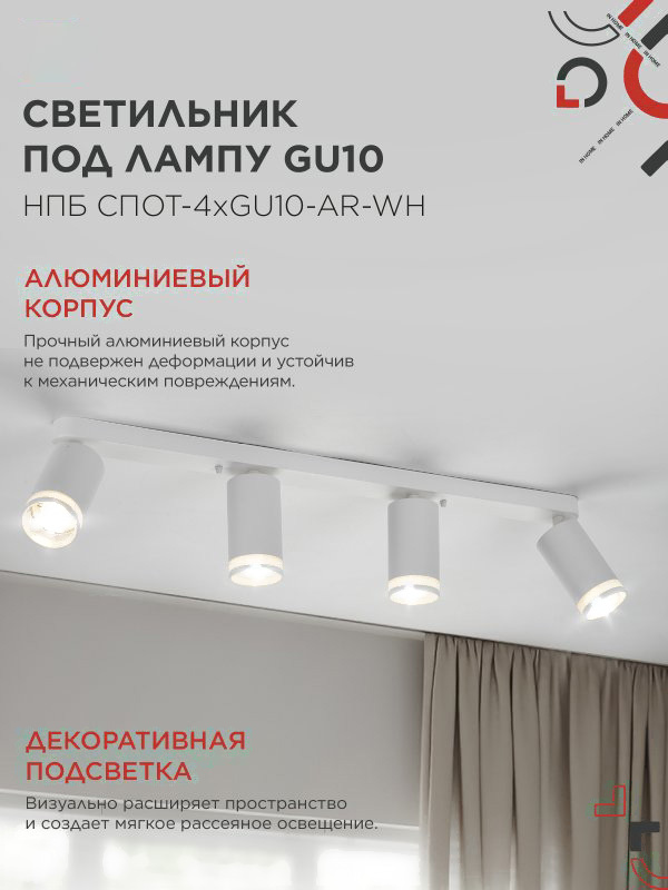 Спот INhome СПОТ-4xGU10-AR-WH / 4690612058214