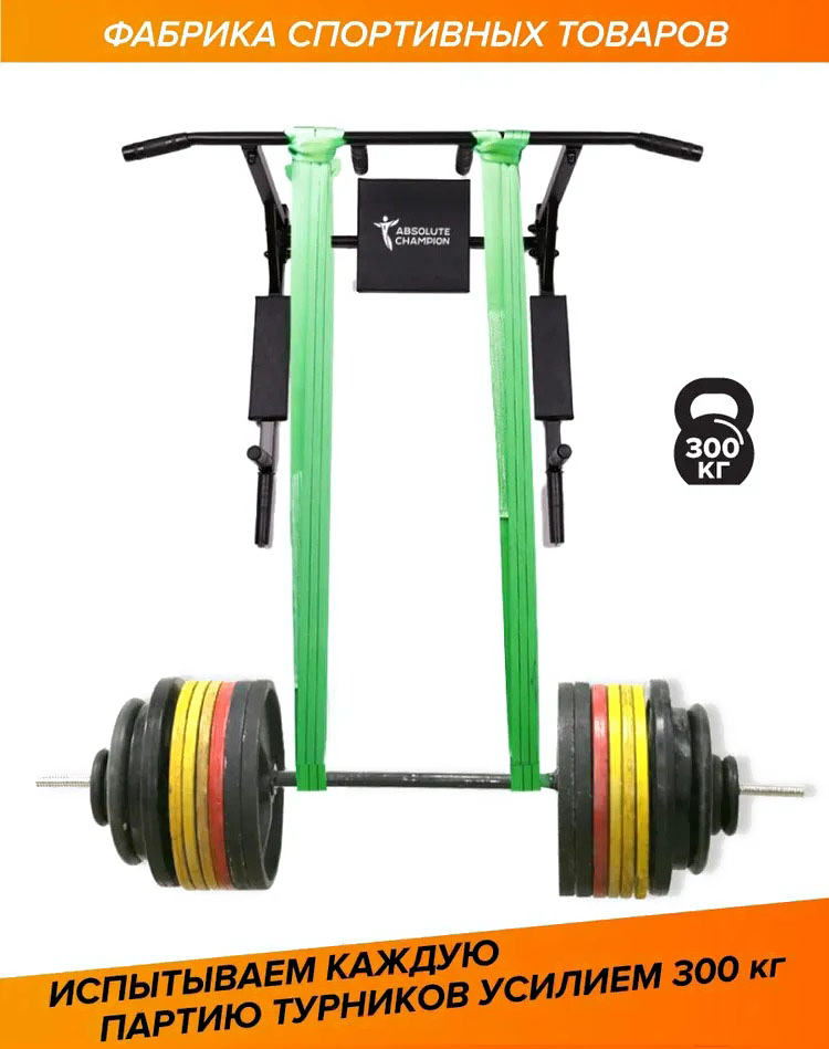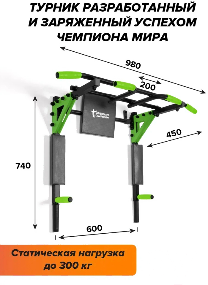 Турник-брусья Absolute Champion Центрл Спорт PRO / АЧ 11633 (черный/салатовые ручки и пластина)