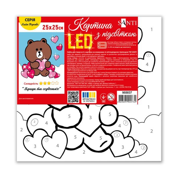 - Модель Лайн Френдс. Браун та серденько 25х25 см LED підсв