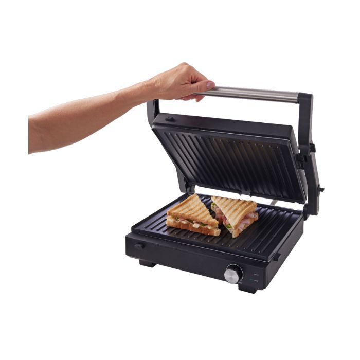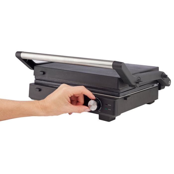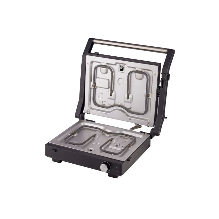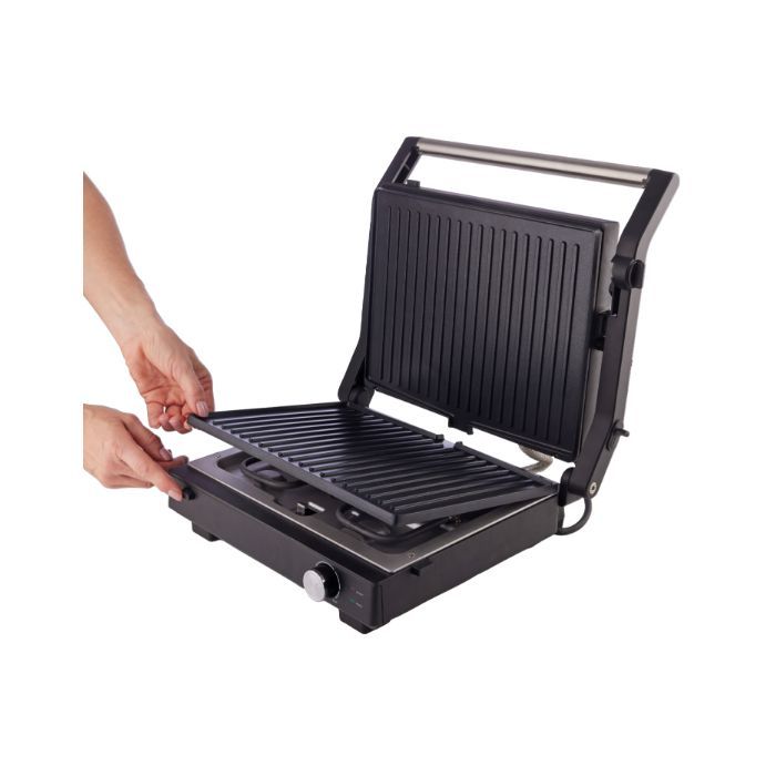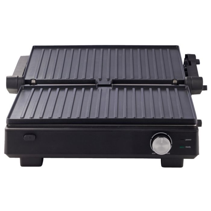 ОсобливостіКонтейнер для рідини Захисна защіпка Гумові ніжки Індикатор нагрівання Індикатор роботи Знімні пластини Піддон для збирання жиру Термостат Термоізольовані ручки , піддон для жиру , знімні пластини , відкриття на 180 ° , індикатор роботи , регульований термостат , нековзні ніжки , ручка, що не нагрівається