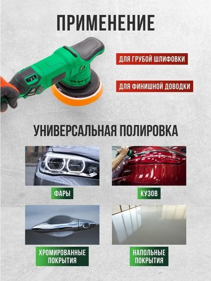 • Комплект поставки - ключ, - комплект угольных щеток, - полировальная насадка, - полировальный круг.