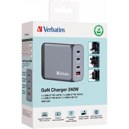 Зарядний пристрій Verbatim GaN 240 W 4 ports (USB-C-140 W,USB-C-100 W,USB-C-65 W /USB-A -3.0) (32205)