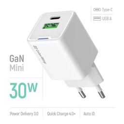 Зарядний пристрій ColorWay GaN Mini 30W PD Port PPS USB (Type-C PD + USB QC4.0) white (CW-CHS053PD-WT)