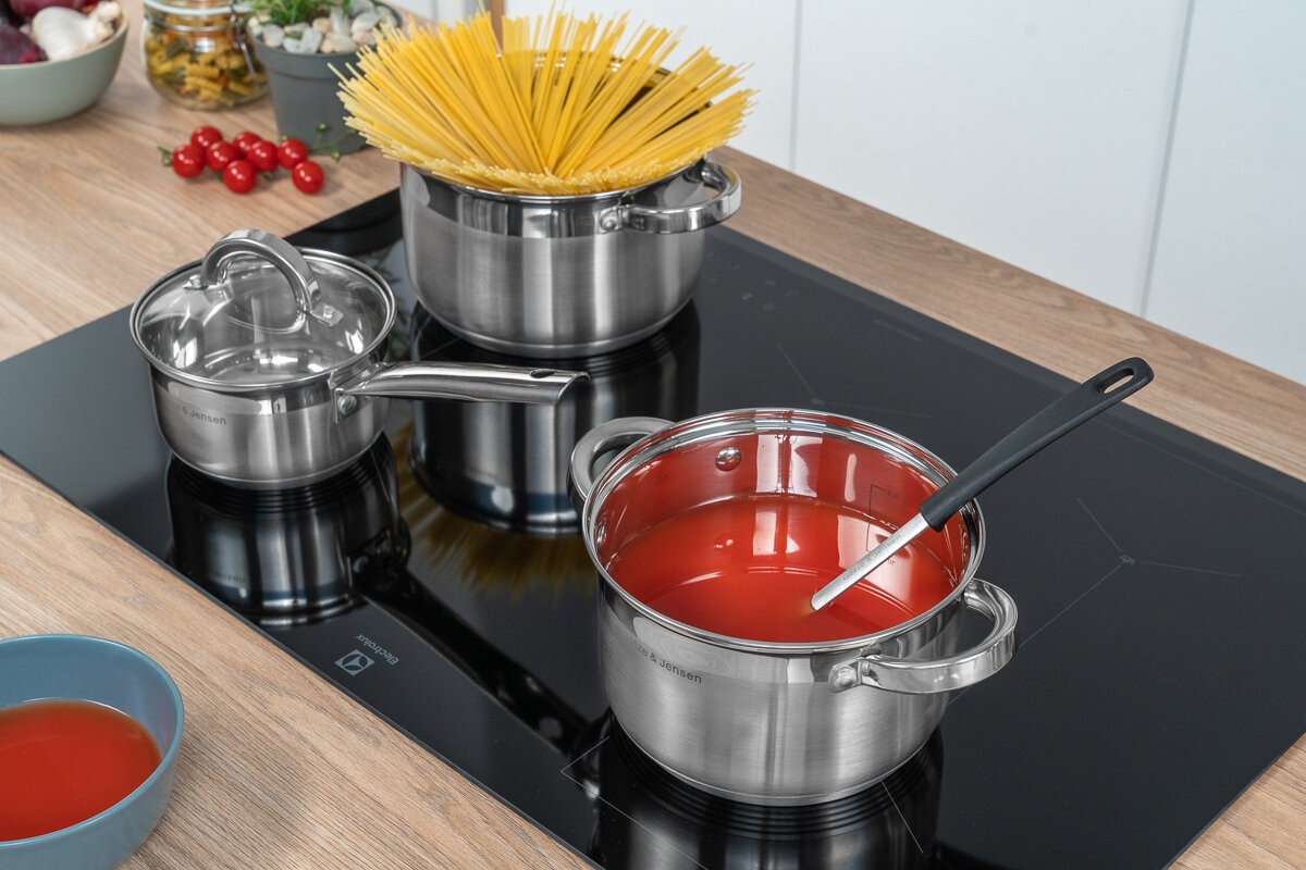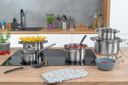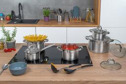 • Дополнительно совместимость с индукциеймытье в посудомойкеиспользование в духовкеотверстие для парамногослойное дношкала литража