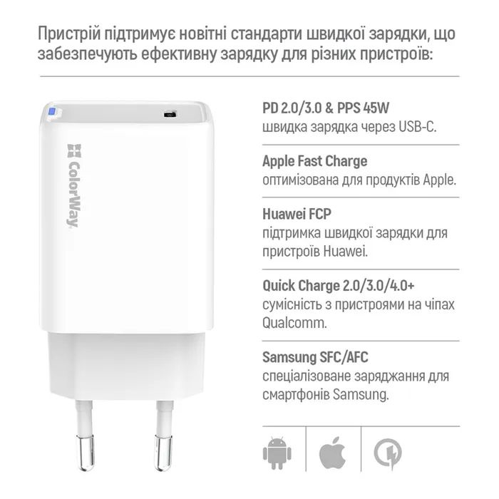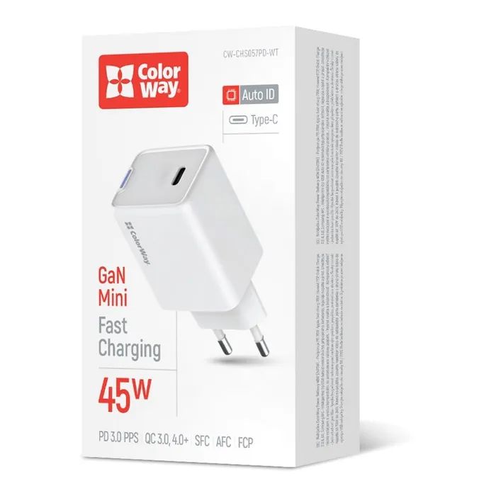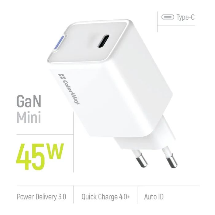 Зарядний пристрій ColorWay GaN Mini 45W PD Port PPS USB-C white (CW-CHS057PD-WT)