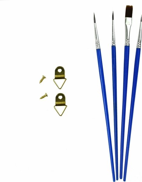 • Комплектация набора лак, пакет, крепление, краски, контрольный лист, холст, кисти