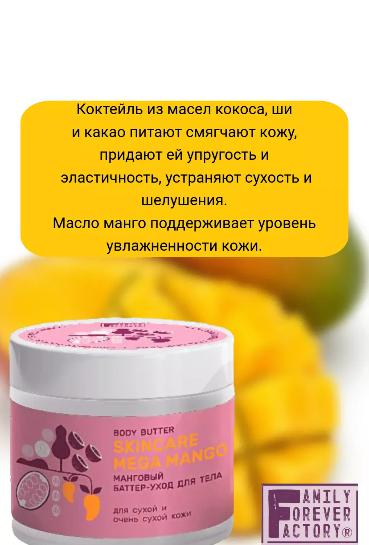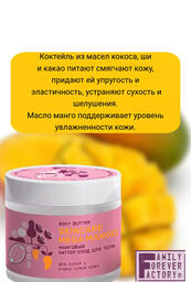 - Активные ингредиенты масло ши (карите), масло кокоса, масло какао, масло манго