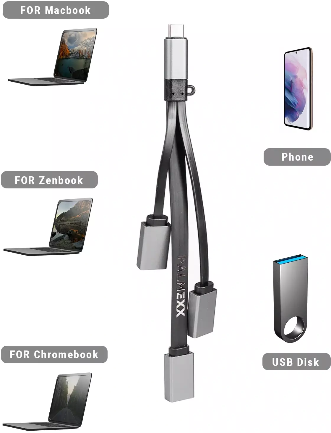 Разветвитель USB-C Palmexx PX/HUB-073 серый