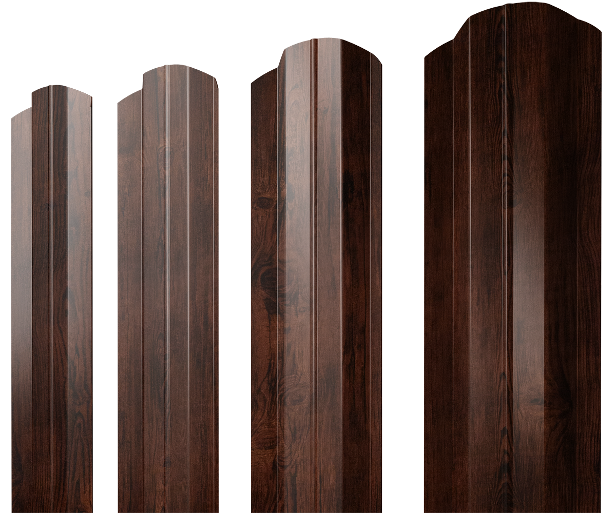 Штакетник М-образный В фигурный — вид штакетника отличает выпуклая во внешнюю сторону форма с ребром на центральной части и дополнительными боковыми ребрами. Этот профиль можно назвать самым жестким.