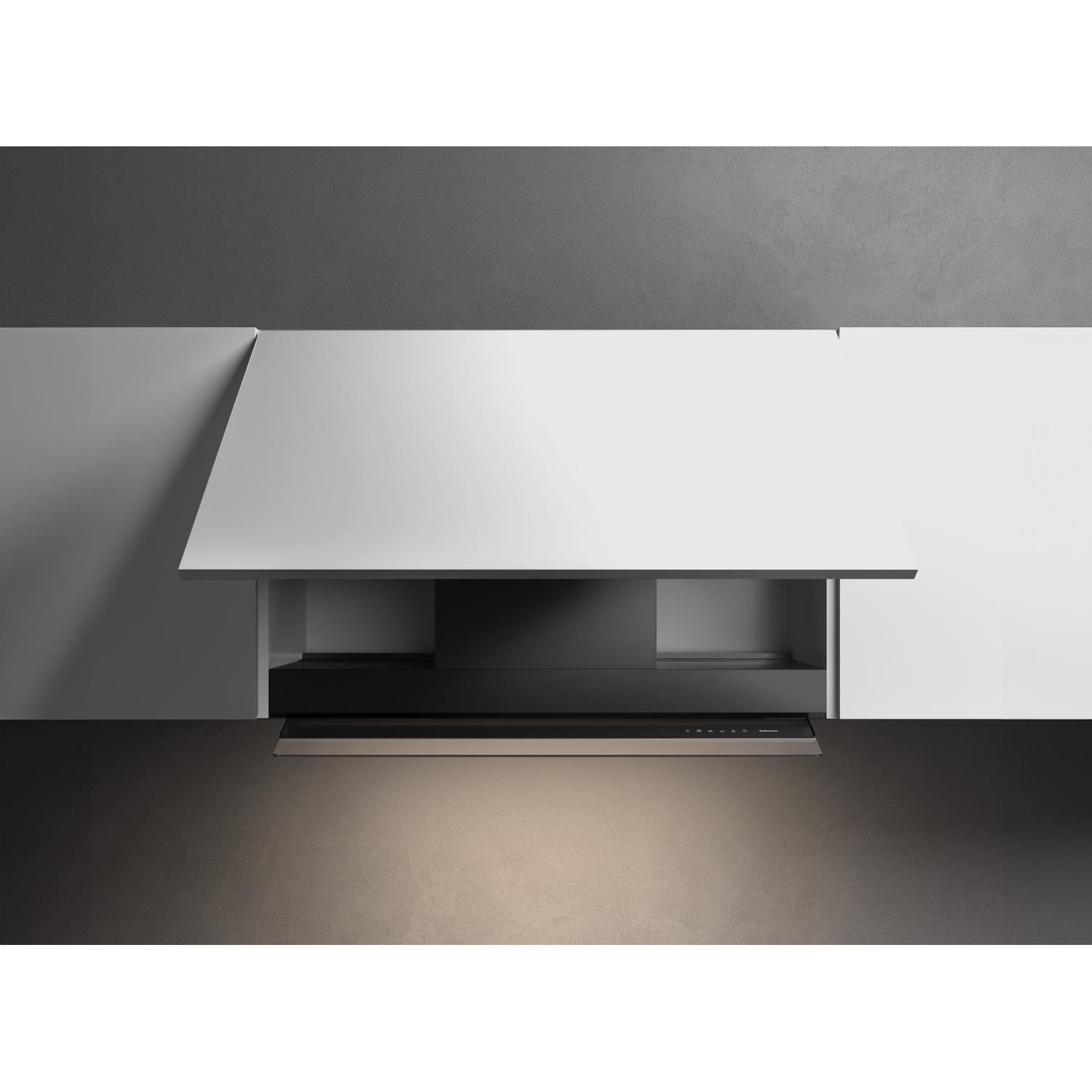 Встраиваемая вытяжка FALMEC VIRGOLA TOUCH NRS 90 BLACK, серия Silence - NRS, 86 см, электронное/сенсорное управление, светодиодное освещение Dynamic Led Light, технология бесшумной работы NRS, 4 скорости, отвод/циркуляция, интенсивный режим, макс. производительность 610 м3/ч, угольный фильтр (опция), пульт ДУ (опция), поворачивающийся/выдвижной стеклянный козырек, энергоэффективность В, цвет черный