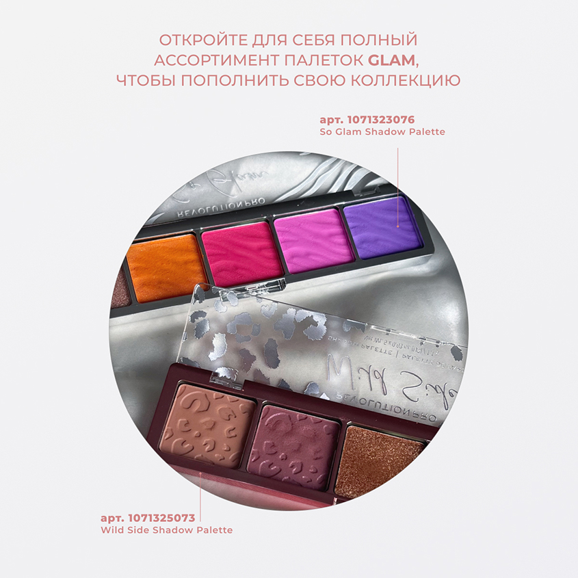 Раскройте свою необузданную сторону с этими палитрами, вдохновленными дикими животными. Палетка «So Glam» включает в себя палитру ярких матовых, металлизированных и сияющих оттенков, которые помогут создать эффектный образ! Ярко-оранжевые, розовые и фиолетовые оттенки позволяют бесконечно творить, создавая модные яркие образы.