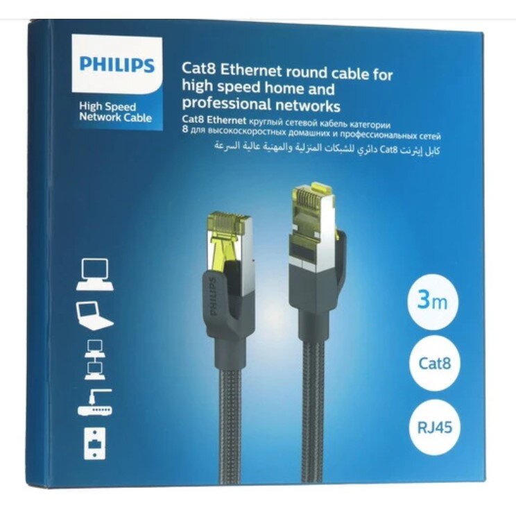 Патч-корд Philips SWN7103G/56 CAT.8 30AWG, OD:5.1mm, OD:5.5MM, 3M Grey