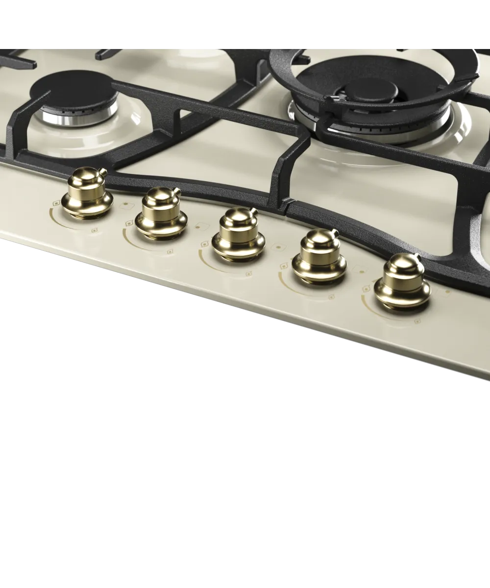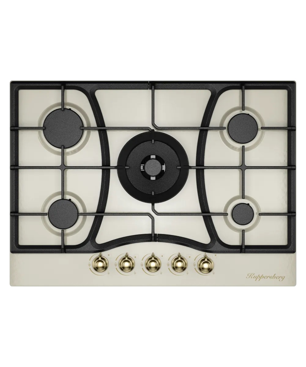 Варочная поверхность Kuppersberg/ Варочная поверхность Kuppersberg, газ, Classic, 71 см, автоматический электроподжиг, газ-контроль, форсунки под сжиженный газ, SABAF конфорки, чугунные решетки, WOK подставка, цвет бежевый, цвет фурнитуры бронзовый