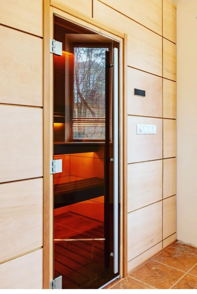 Дверь для бани Doorwood Престиж Бронза 1900x700 мм используется для установки в помещениях бани. Изготавливается из 8-ми мм каленого стекла, что делает ее максимально безопасной. Стеклянное полотно крепится к коробке с помощью 3-х усиленных квадратных из аллюминия петель. Дверная коробка изготавливается из ольхи.