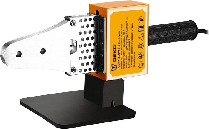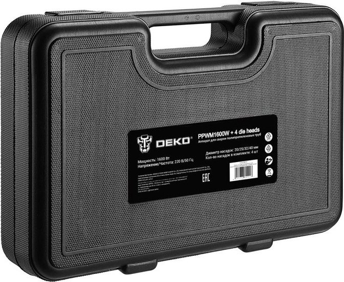 • Комплектация - Аппарат для сварки – 1 шт.- Насадки (20 / 25 / 32 / 40 мм) – 4 шт .- Винты – 2 шт.- Шестигранный ключ – 1 шт.- Пластиковая подставка - 1 шт.- Руководство по эксплуатации- Кейс