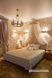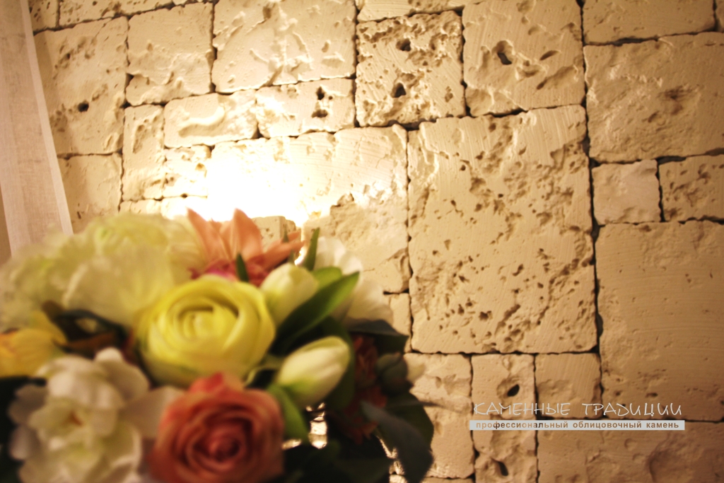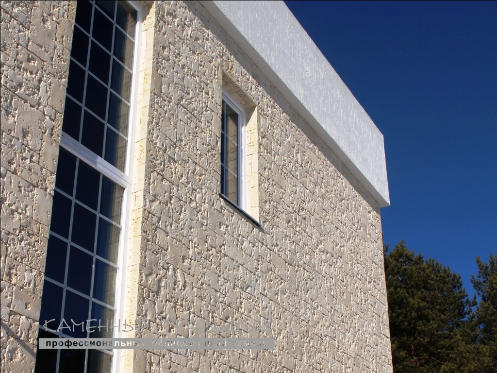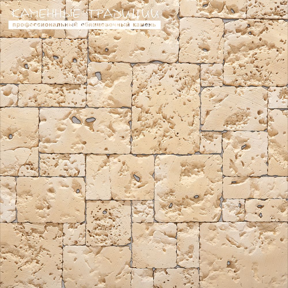 Укладывается на клей на цементной основе. Благодаря рисунку этого отделочного камня и пересечению швов, создается оригинальная композиция. Фактура спроектирована таким образом, что сквозные каверны и некоторые неровности в швах нуждаются в заполнении клеевым составом. При укладке следует избегать длинных вертикальных швов. Облицовка осуществляется быстро и без проблем.