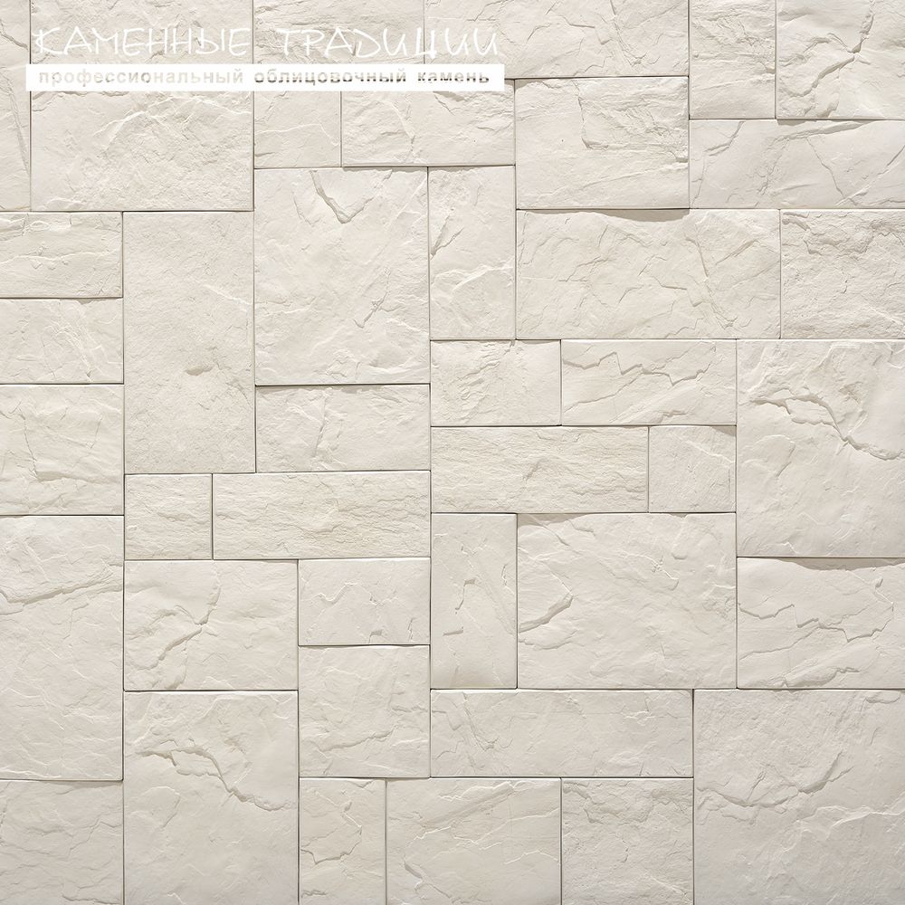 Невысокий рельеф с естественными сколами и почти гладкой лицевой частью. Благодаря рисунку этого искусственного отделочного камня и пересечению швов, создается оригинальная композиция. Камень хорошо сочетается с рельефными камнями (например, Эверестом или Известняком). Идеально подходит как для интерьера, так и украсит фасад здания.