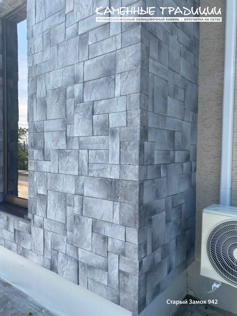 Невысокий рельеф с естественными сколами и почти гладкой лицевой частью. Благодаря рисунку этого искусственного отделочного камня и пересечению швов, создается оригинальная композиция. Камень хорошо сочетается с рельефными камнями (например, Эверестом или Известняком). Идеально подходит как для интерьера, так и украсит фасад здания.