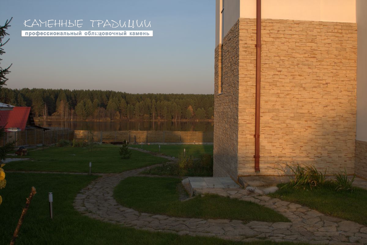 Укладывается на клей на цементной основе со смещением по вертикальным швам. Облицовка осуществляется быстро и без проблем.