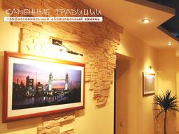 Применение Тонкого Пласта идеально подходит как для интерьера, так и украсит фасад здания. Фактура камня воспроизводит рельефную поверхность стены, сложенной из скальной породы. Грубый рельеф подчеркнёт индивидуальность и основательность пластового камня.