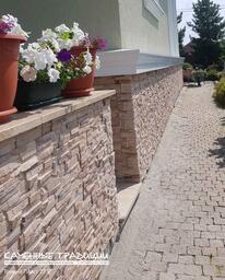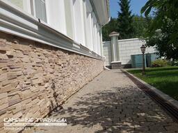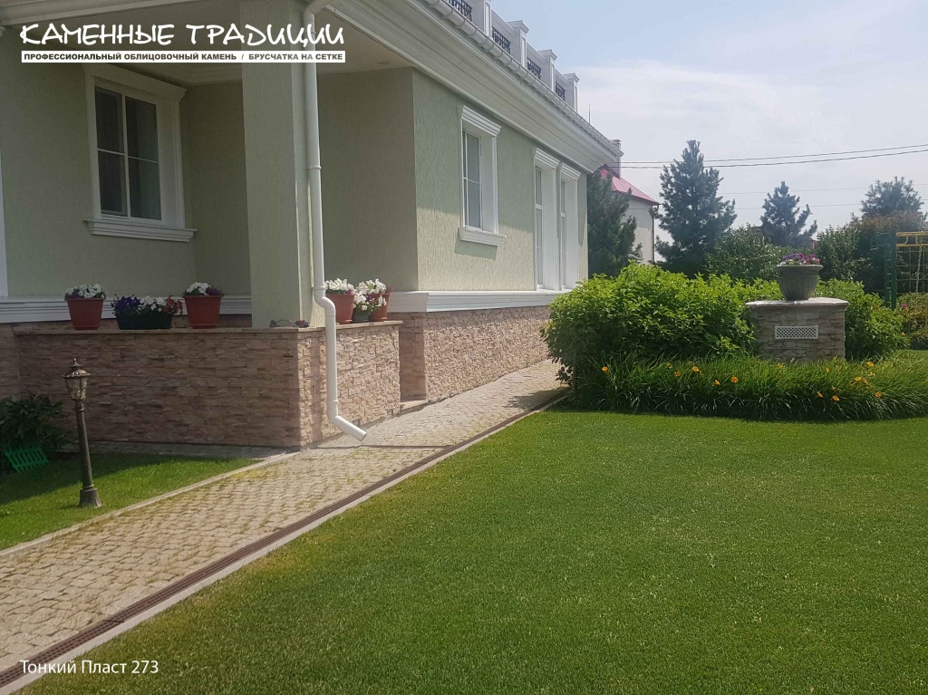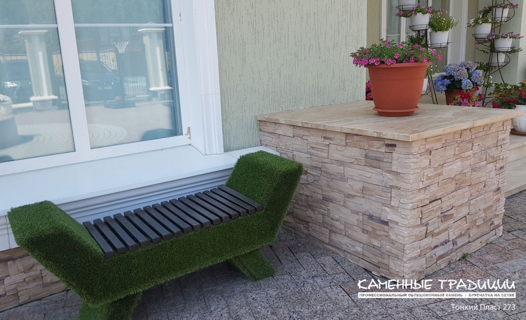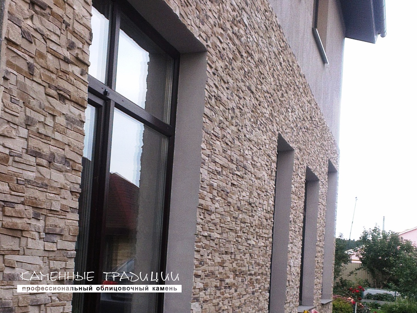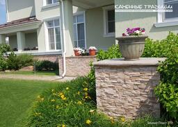 Укладывается на клей на цементной основе со смещением по вертикальным швам. Облицовка осуществляется быстро и без проблем.