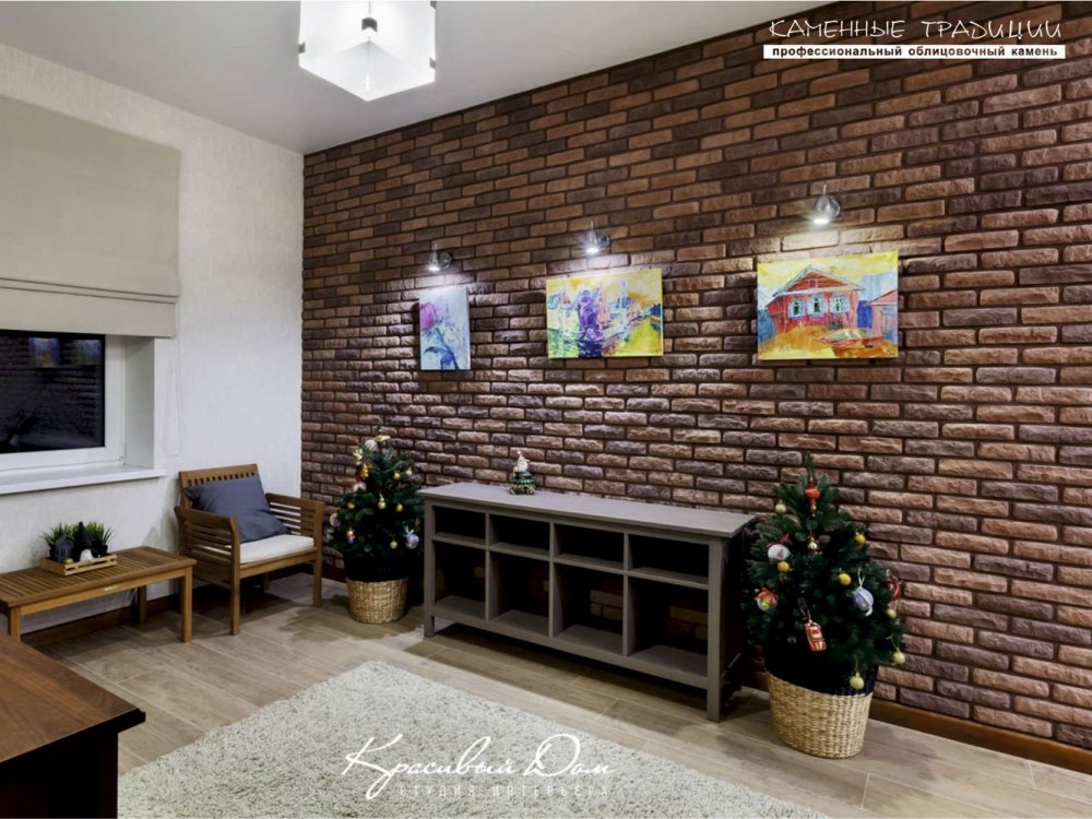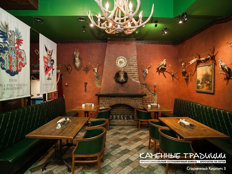 Плитка имитирует состарившийся от времени добротный кирпич и применяется на объектах, несущих налёт благородной старины. Облицовка из этого камня одинаково хороша как на фасадах, так и в интерьерах. Старинный Кирпич прекрасно сочетается практически со всеми фактурами в разных стилевых решениях.