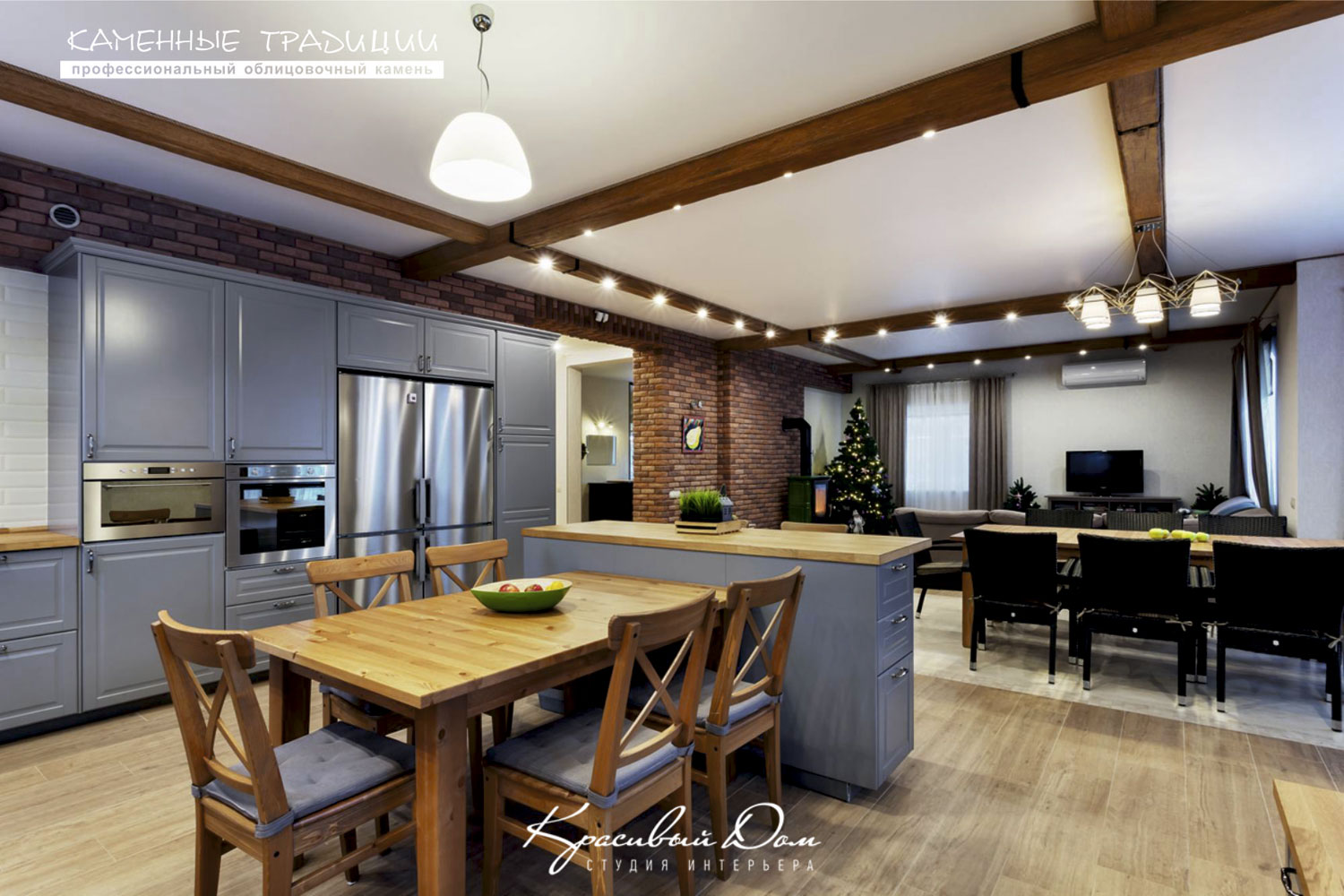 Традиционно кирпич укладывается с расшивкой в 1 см. на клей на цементной основе. Камень одинаково интересно смотрится в укладке как с расшивкой, так и без. Так как размеры всех плиток одинаковые, то облицовка осуществляется быстро и без проблем.