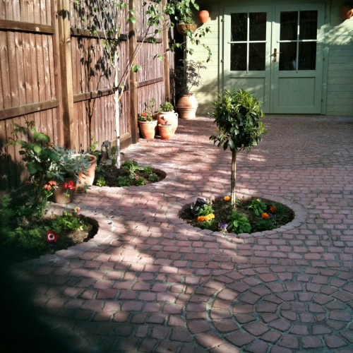 Для создания дополнительной защиты и придания большей насыщенности цвета брусчатому покрытию, рекомендуем покрыть поверхность лаком для бетона.
