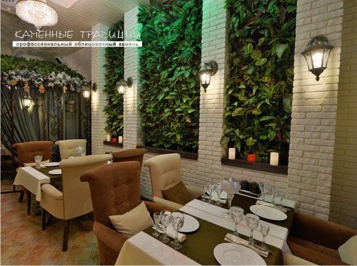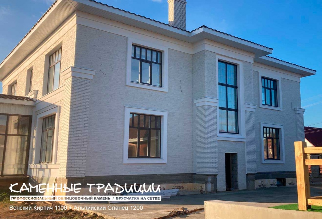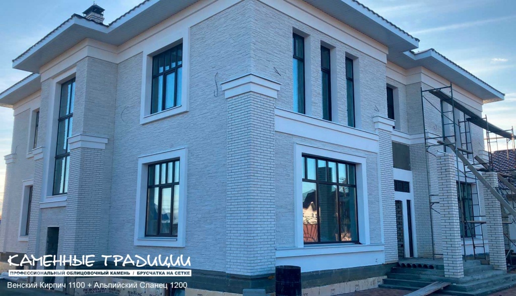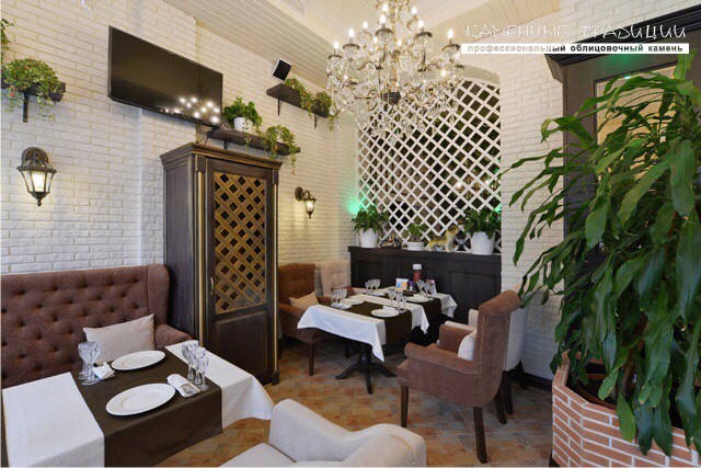 Традиционно кирпич укладывается с расшивкой в 1 см. на клей на цементной основе. Камень одинаково интересно смотрится в укладке как с расшивкой, так и без. Так как размеры всех плиток одинаковые, то облицовка осуществляется быстро и без проблем.