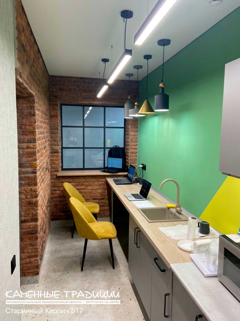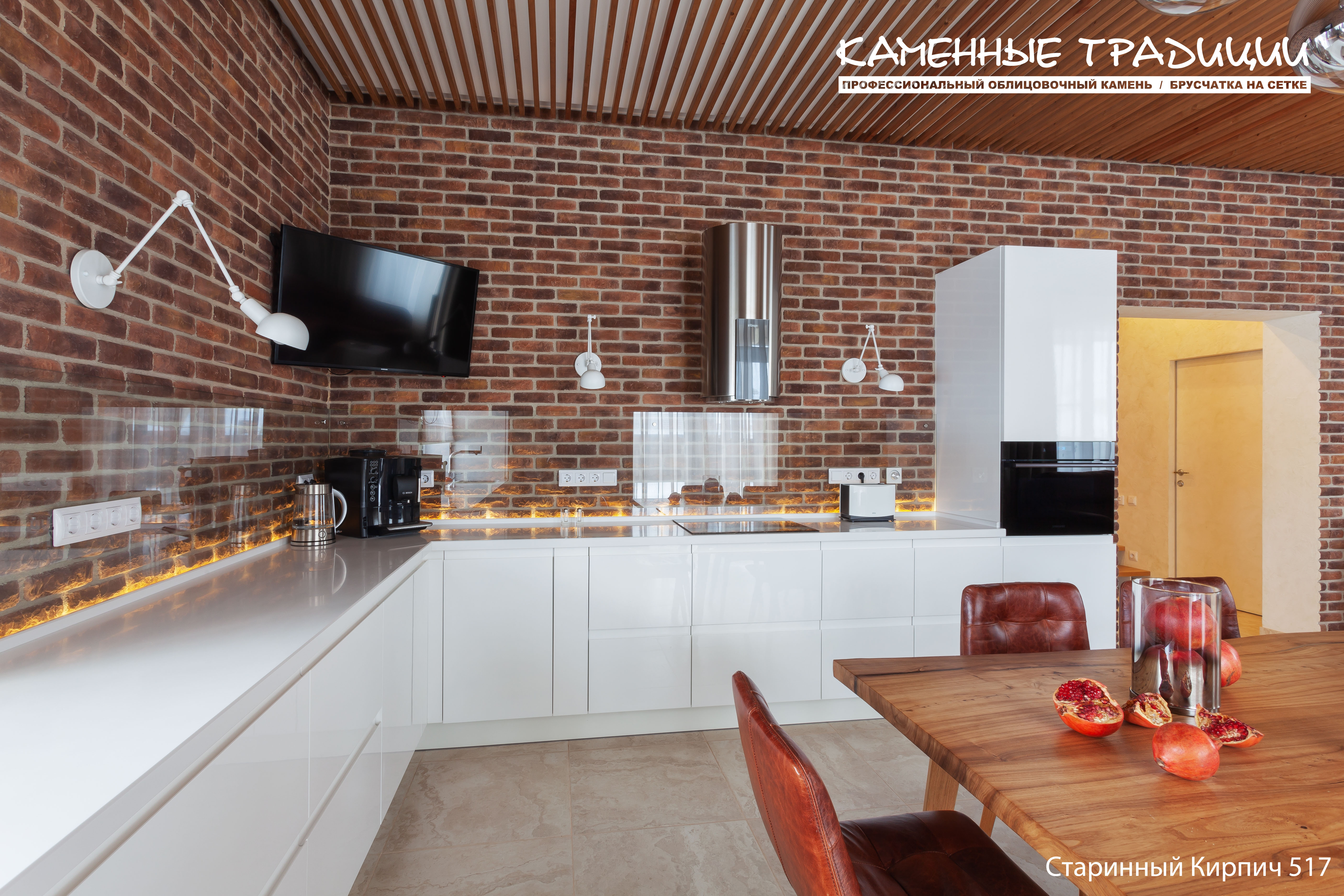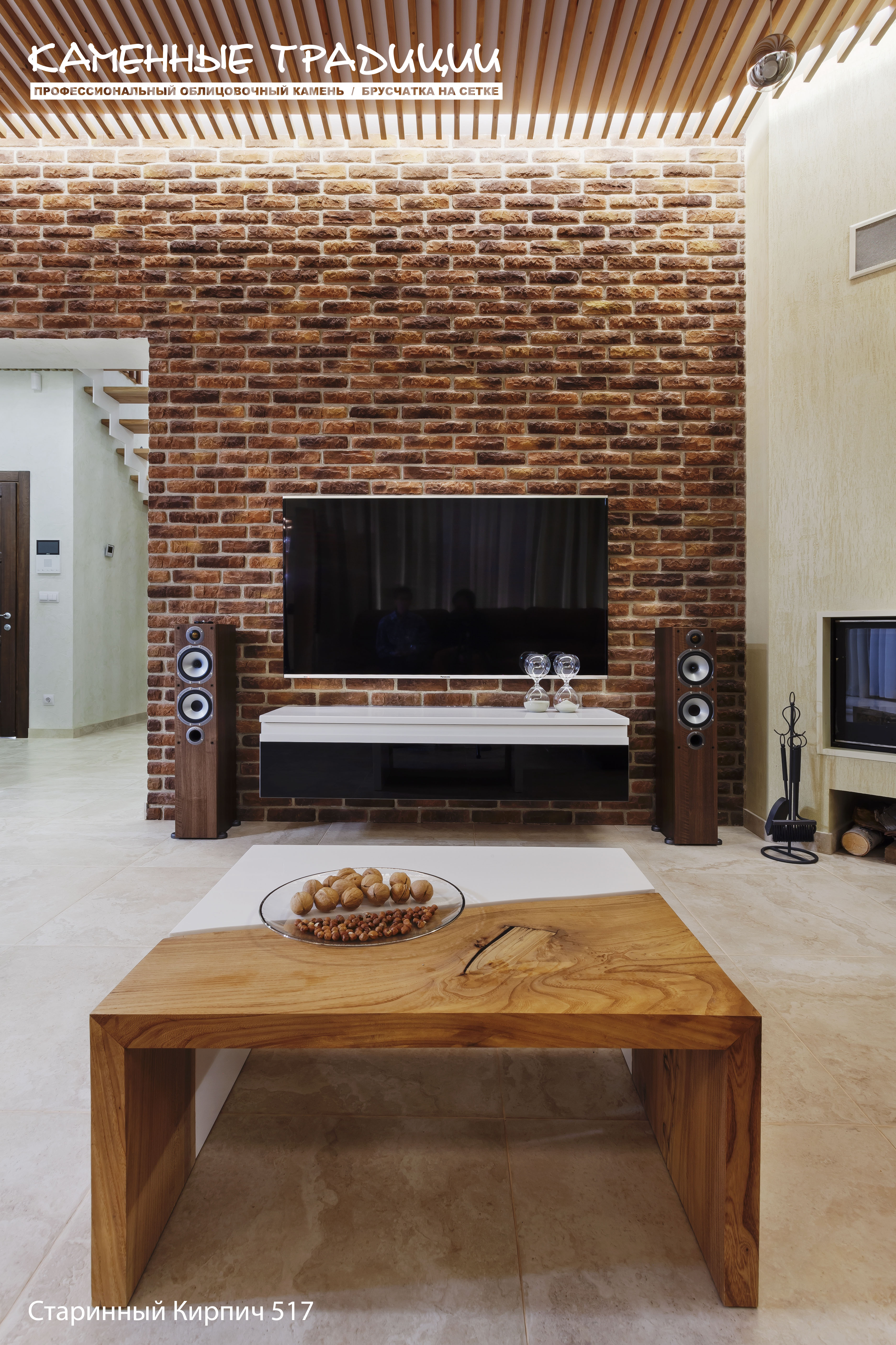 Плитка имитирует состарившийся от времени добротный кирпич и применяется на объектах, несущих налёт благородной старины. Облицовка из этого камня одинаково хороша как на фасадах, так и в интерьерах. Старинный Кирпич прекрасно сочетается практически со всеми фактурами в разных стилевых решениях.