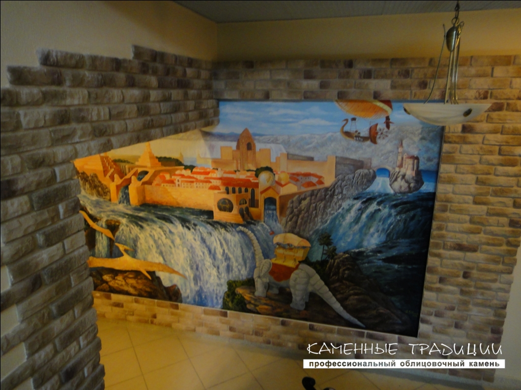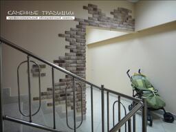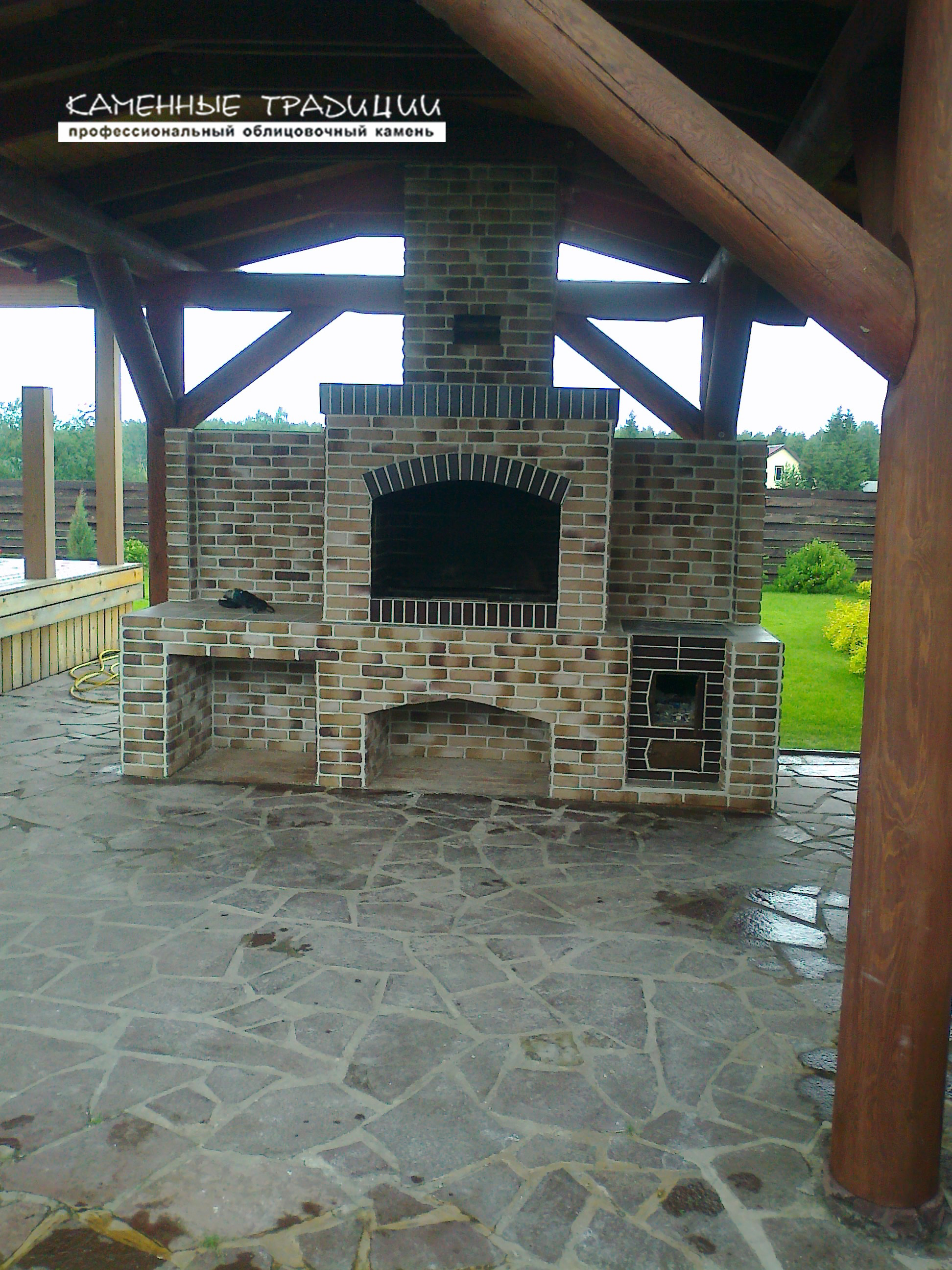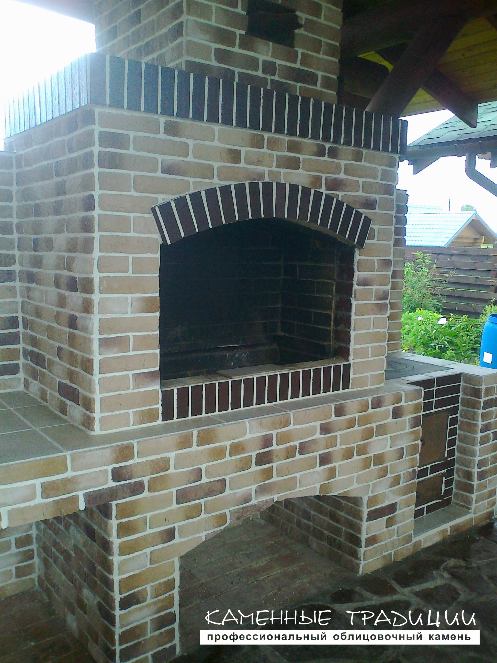 Традиционно кирпич укладывается с расшивкой в 1 см. на клей на цементной основе. Камень одинаково интересно смотрится в укладке как с расшивкой, так и без. Так как размеры всех плиток одинаковые, то облицовка осуществляется быстро и без проблем.