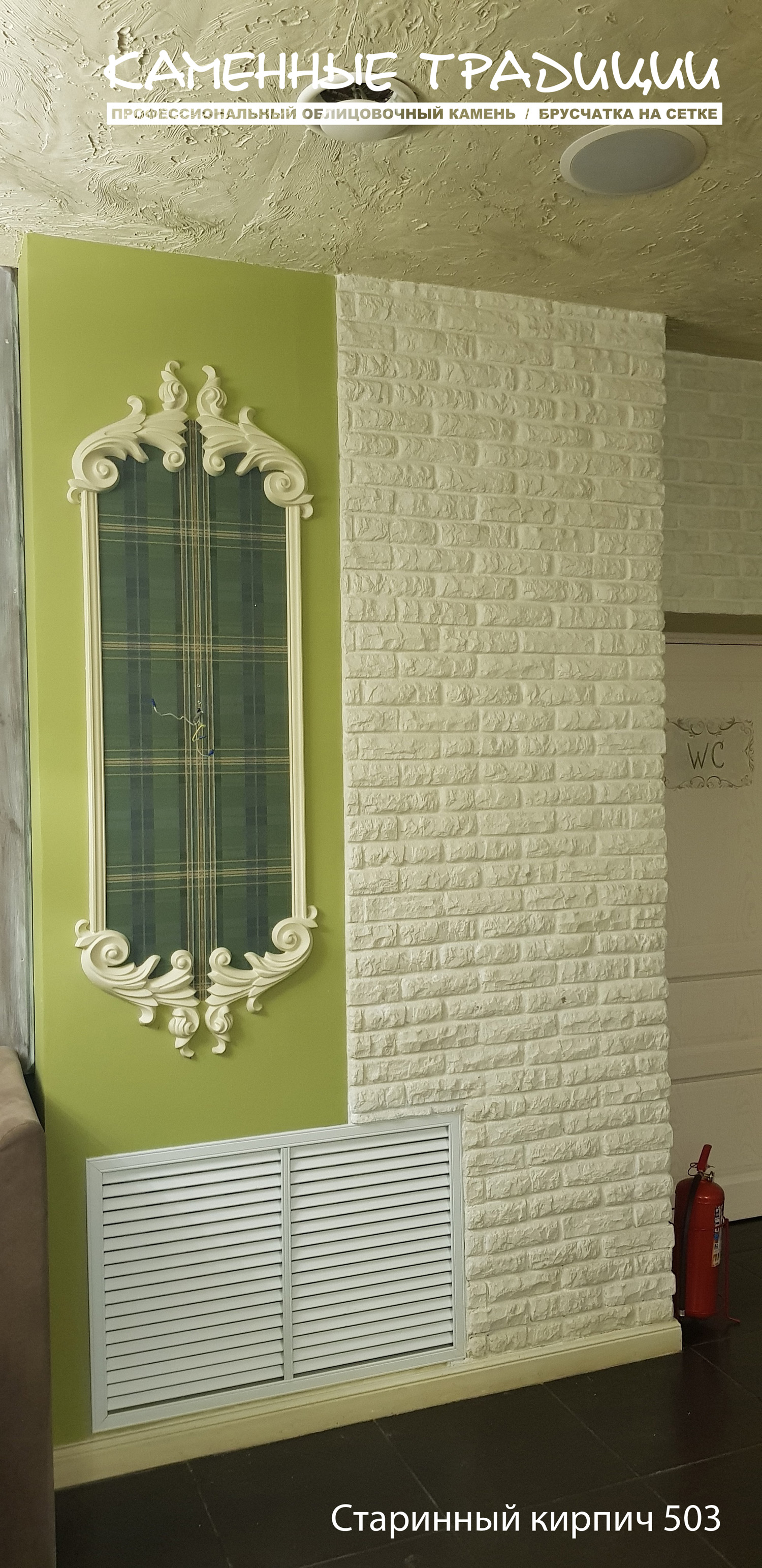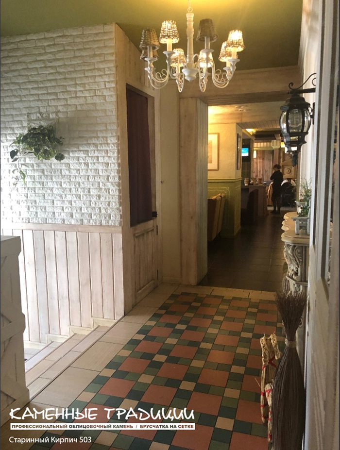 Плитка имитирует состарившийся от времени добротный кирпич и применяется на объектах, несущих налёт благородной старины. Облицовка из этого камня одинаково хороша как на фасадах, так и в интерьерах. Старинный Кирпич прекрасно сочетается практически со всеми фактурами в разных стилевых решениях.