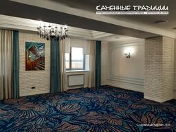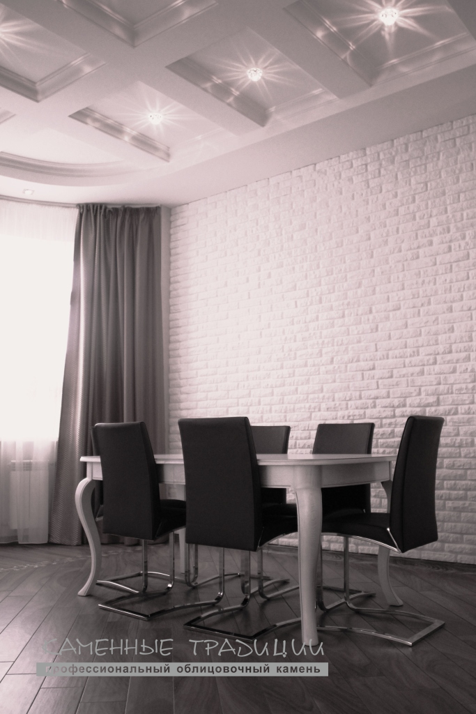 Традиционно кирпич укладывается с расшивкой в 1 см. на клей на цементной основе. Камень одинаково интересно смотрится в укладке как с расшивкой, так и без. Так как размеры всех плиток одинаковые, то облицовка осуществляется быстро и без проблем.
