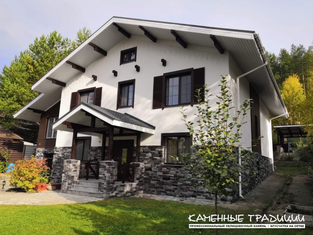Дикий Камень имеет ярко выраженную объёмную текстуру – наиболее выступающие плитки имеют толщину 8 см и образуют грубые, нависающие карнизы. Отсутствие четких линий и гармоничность крупного природного камня, делают этот материал столь востребованным в загородном строительстве и городских архитектурных проектах.