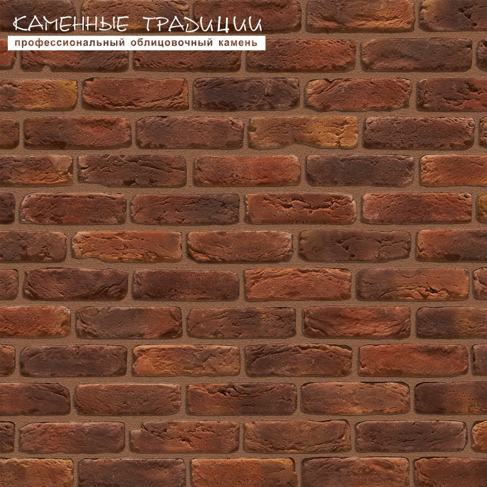 Сделанный вручную окрас каждого кирпичика уникален. Его шероховатая, зернистая, с благородным налётом патины поверхность, подчеркнёт творческое настроение интерьера. Десять вариантов цветной расшивки Каменные Традиции на порядок увеличивают арсенал дизайнера в подборе цветовых сочетаний. Наличие в коллекции тычковых, ложковых и угловых элементов, а также элементы с клеймами производителей кирпича царской России позволят ещё интереснее проектировать пространства.