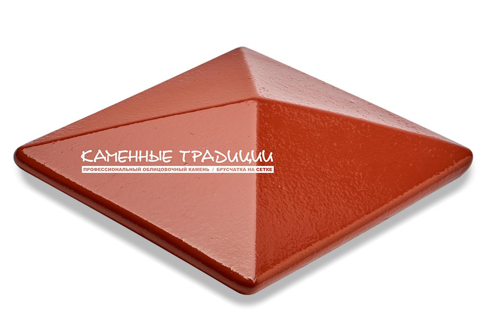 Декоративный колпак для устройства водостока со столбов сечением в полтора кирпича (аналог продукции польского производителя керамических оголовков Кинг Клинкер). Элементы изготавливаются из архитектурного бетона с термообработкой, ударопрочным покрытием и прокрашены в массе. Детали устойчивы как к морскому климату, так и к экстремальным условиям Крайнего Севера — производятся по технологии гидротехнического бетона.