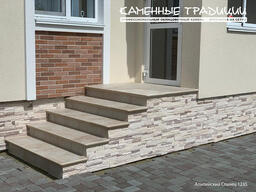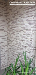 Укладывается на клей на цементной основе со смещением по вертикальным швам. Облицовка осуществляется быстро и без проблем.