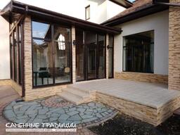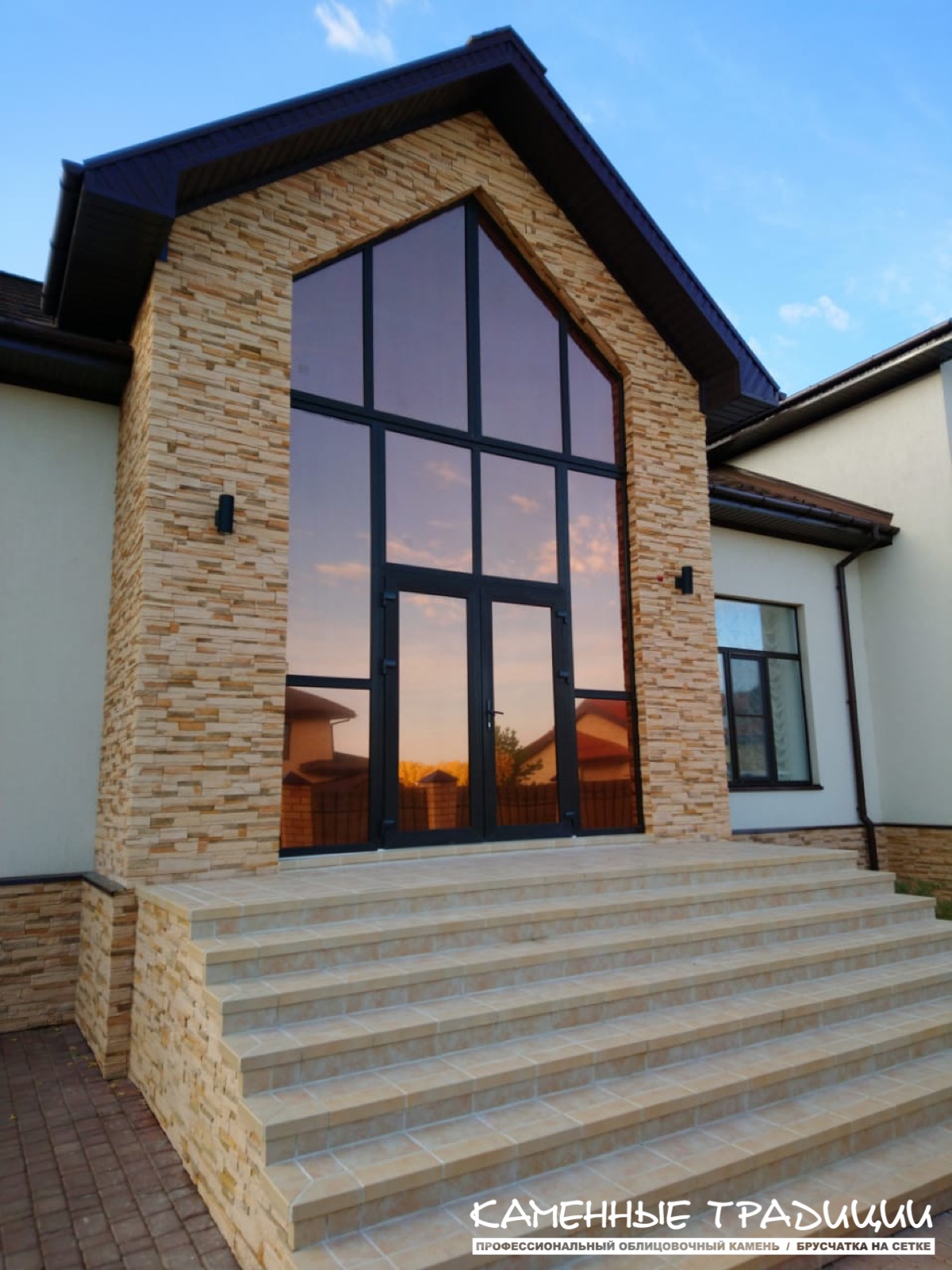 Укладывается на клей на цементной основе со смещением по вертикальным швам. Облицовка осуществляется быстро и без проблем.