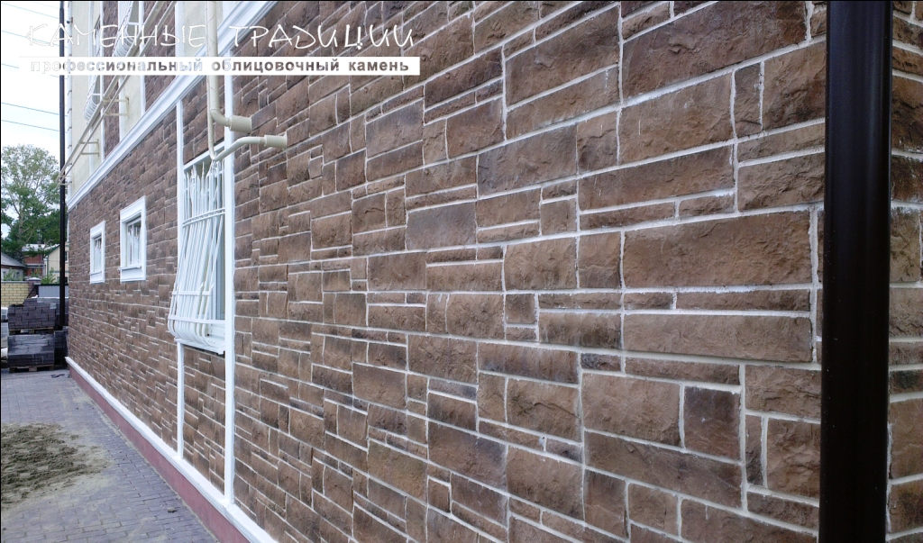 Благодаря строгому геометрическому рисунку, облицовка осуществляется быстро и без проблем. Укладывается на клей на цементной основе с расшивочным швом в 1 см. Для защиты поверхности от неблагоприятных погодных условий, особенно на уровне капельного боя, рекомендуется покрыть поверхность гидрофобизатором.