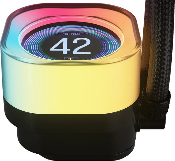 ✅ CORSAIR iCUE LINK TITAN 360 RX LCD — это высокоэффективная и тихая система жидкостного охлаждения процессора с оптимизированной термопередачей, простой системой подключения iCUE LINK и настраиваемой RGB-подсветкой. Особенностью является индивидуально настраиваемый IPS LCD дисплей 2.1 дюйма с разрешением 480x480, позволяющий отображать системные данные, изображения или GIF-анимации, а также поддержка интеграции с GIPHY.✅ Данная модель оснащена тремя производительными вентиляторами RX120 RGB, которые обеспечивают мощный поток воздуха и высокое статическое давление при минимальном уровне шума (до 36 дБ). Благодаря трехфазному мотору помпы и инженерному подходу к конструкции, достигается эффективное охлаждение самых современных процессоров Intel и AMD.✅ Корпус водоблока украшен 44 индивидуально адресуемыми RGB-светодиодами, а каждый вентилятор — ещё восемью, что создает эффектную синхронизированную цветовую иллюминацию. В системе предусмотрена возможность быстрого внешнего изменения дизайна помпы с помощью модульных CapSwap-насадок (продаются отдельно), а декоративные боковые панели на вентиляторах позволяют выбрать оформление между прозрачным окном и фирменным логотипом.✅ Для максимальной производительности и простоты установки в комплекте идут крепления под современные сокеты Intel LGA 1851/1700 и AMD AM5/AM4, а также предварительно нанесённая высокоэффективная термопаста CORSAIR XTM70. Длина радиатора составляет 396 мм, ширина 120 мм, толщина 27 мм, длина трубок — 400 мм, что обеспечивает совместимость с большинством современных корпусов.✅ CORSAIR iCUE LINK TITAN 360 RX LCD — это высокоэффективная и тихая система жидкостного охлаждения процессора с оптимизированной термопередачей, простой системой подключения iCUE LINK и настраиваемой RGB-подсветкой. Особенностью является индивидуально настраиваемый IPS LCD дисплей 2.1 дюйма с разрешением 480x480, позволяющий отображать системные данные, изображения или GIF-анимации, а также поддержка интеграции с GIPHY.✅ Данная модель оснащена тремя производительными вентиляторами RX120 RGB, которые обеспечивают мощный поток воздуха и высокое статическое давление при минимальном уровне шума (до 36 дБ). Благодаря трехфазному мотору помпы и инженерному подходу к конструкции, достигается эффективное охлаждение самых современных процессоров Intel и AMD.✅ Корпус водоблока украшен 44 индивидуально адресуемыми RGB-светодиодами, а каждый вентилятор — ещё восемью, что создает эффектную синхронизированную цветовую иллюминацию. В системе предусмотрена возможность быстрого внешнего изменения дизайна помпы с помощью модульных CapSwap-насадок (продаются отдельно), а декоративные боковые панели на вентиляторах позволяют выбрать оформление между прозрачным окном и фирменным логотипом.✅ Для максимальной производительности и простоты установки в комплекте идут крепления под современные сокеты Intel LGA 1851/1700 и AMD AM5/AM4, а также предварительно нанесённая высокоэффективная термопаста CORSAIR XTM70. Длина радиатора составляет 396 мм, ширина 120 мм, толщина 27 мм, длина трубок — 400 мм, что обеспечивает совместимость с большинством современных корпусов.