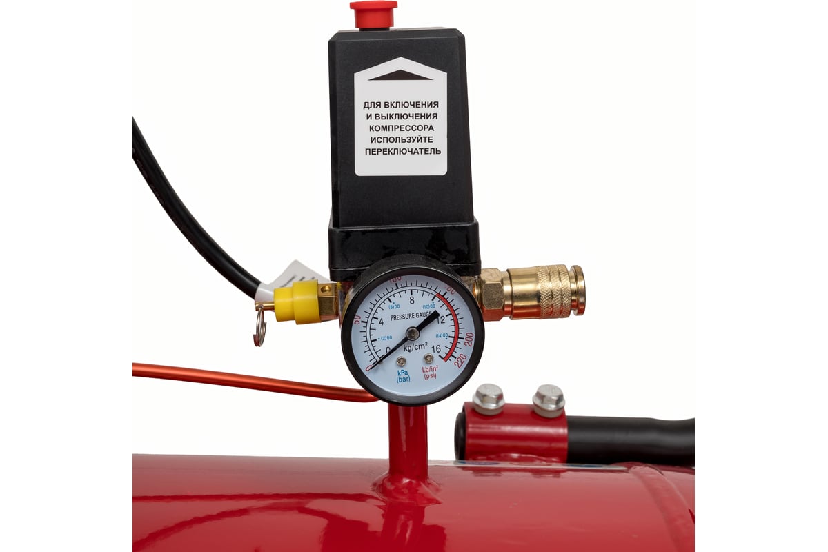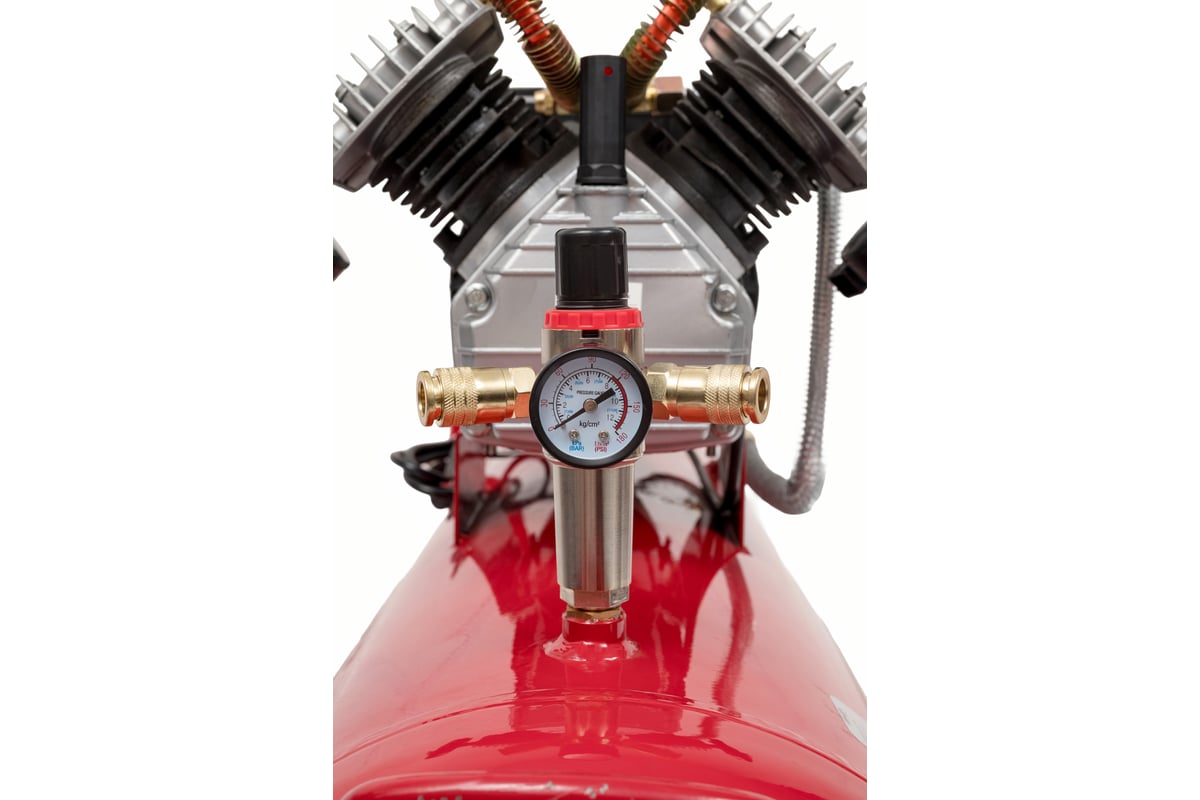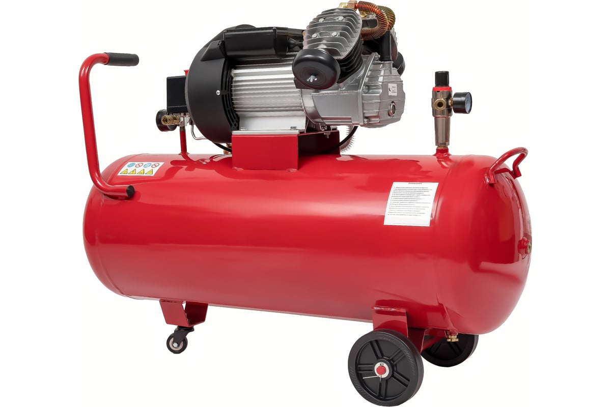 Рабочее давление в 8 бар позволяет использовать его для различных задач, требующих стабильного воздушного потока. Объем ресивера составляет 100 литров, что способствует длительной работе без необходимости частых перерывов на заправку. Поршневой коаксиальный тип компрессора с прямым приводом гарантирует надежность и долговечность.