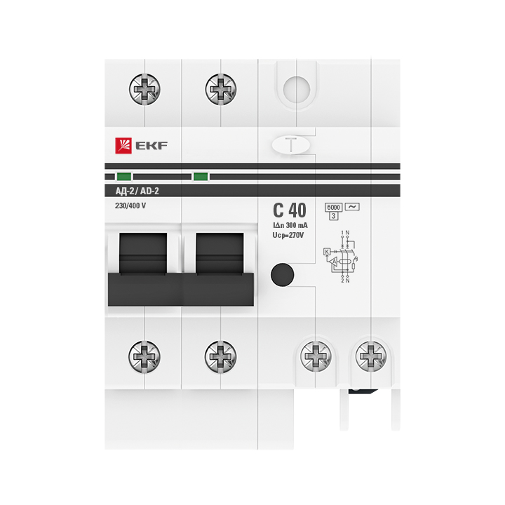 "Дифференциальный автоматический выключатель АД-2(4) (S) EKF PROxima представляет собой аппарат, сочетающий функции автоматического выключателя с устройством защитного отключения. При обнаружении автоматическим выключателем в защищаемом участке сети тока утечки (повреждения) на землю или сверхтока (тока перегрузки или короткого замыкания) происходит срабатывание устройства, приводящее к отключению защищаемой сети. Особое отличие дифференциальных автоматов EKF – в наличии встроенного блока защиты от перенапряжения.